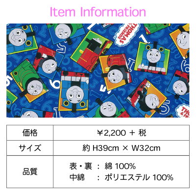 商品名 機関車トーマス 2Wayリュック サイズ 約H39cm×W32cm 品質 綿100%(中綿 ポリエステル100%) 原産国 日本 商品説明 ・総柄プリントの綿素材を使用し手作り感のあるように仕上げた商品です。