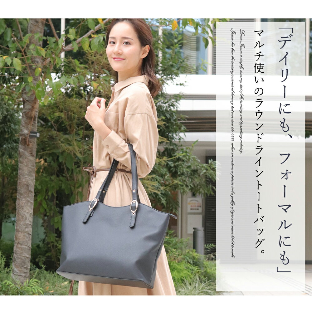 シンプルであきの来ないデザインでトートバッグやショルダーバッグのようにデイリー使いでもハンドバッグのようにオフィスにも幅広く使える仕上がりです。
