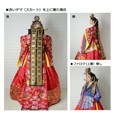 )■新郎サイズ/いつも着ているお洋服がM〜3Lの方ならほぼ着用OK !■身長 165〜185cm■袖丈83cm■胸囲 フリー(110cmまで)■ズボン丈 130cm■ウエスト仕様 115cmまで・折りたたんで調整■セット内容/新婦用■衣装本体、下着類、靴、テンギ2点、(クンテンギ・ピニョテンギ)、婚礼用ピニョ、他ご選択ヘッドドレス1点■付属品/衣装本体・下着類・靴・帽子・旗 ※ご確認ください。